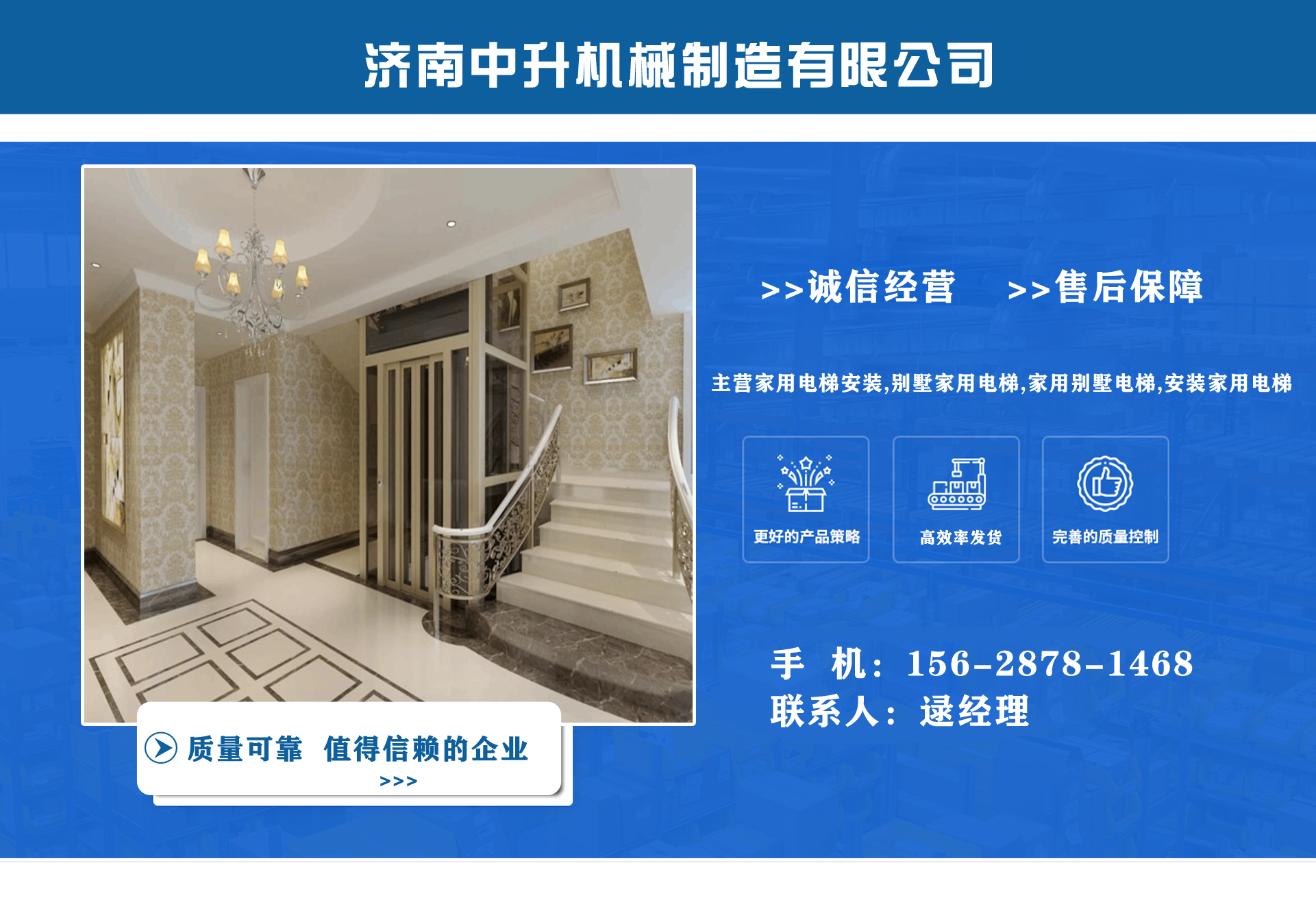 濟(jì)南中升機(jī)械制造有限公司主營家用電梯安裝,別墅家用電梯,家用別墅電梯,安裝家用電梯等業(yè)務(wù),質(zhì)量可靠,值得信賴! 公司為客戶提供免費(fèi)上門測量,根據(jù)實際情況1對1服務(wù),保障符合用戶需求,終身提供售后服務(wù),讓用戶買的舒心用的放心。匠心團(tuán)隊,打造信賴產(chǎn)品,我們有團(tuán)結(jié)、奮進(jìn)拼搏的匠心團(tuán)隊,為您提供可信賴的品質(zhì)保證。 從創(chuàng)立以來一直嚴(yán)格執(zhí)行質(zhì)量管理體系、環(huán)境管理體系等相關(guān)標(biāo)準(zhǔn)管理體系,“顧客滿意”是我們始終如一的追求。我們有屬于自己培養(yǎng)的安裝隊伍,24小時服務(wù)電話,為您提供可靠的服務(wù)與支持?! ∥覀兊脑妇笆墙ㄔO(shè)國內(nèi)具有影響力的電梯公司,做城市美好空間的好伙伴。...